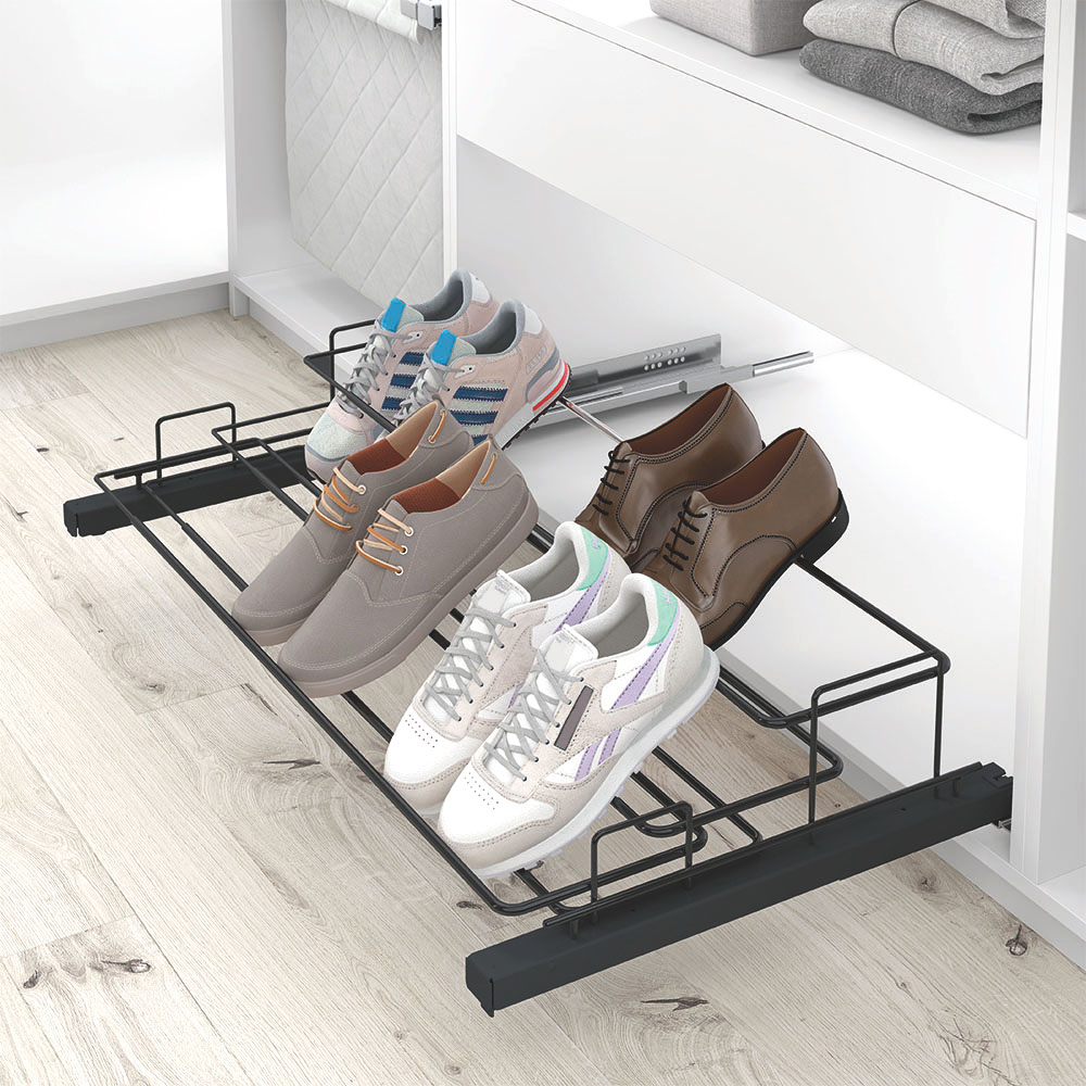 Главная Duslar Выдвижная телескопическая обувница DEBA, распашной фасад, ширина 640-1000 мм, антрацит